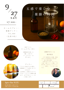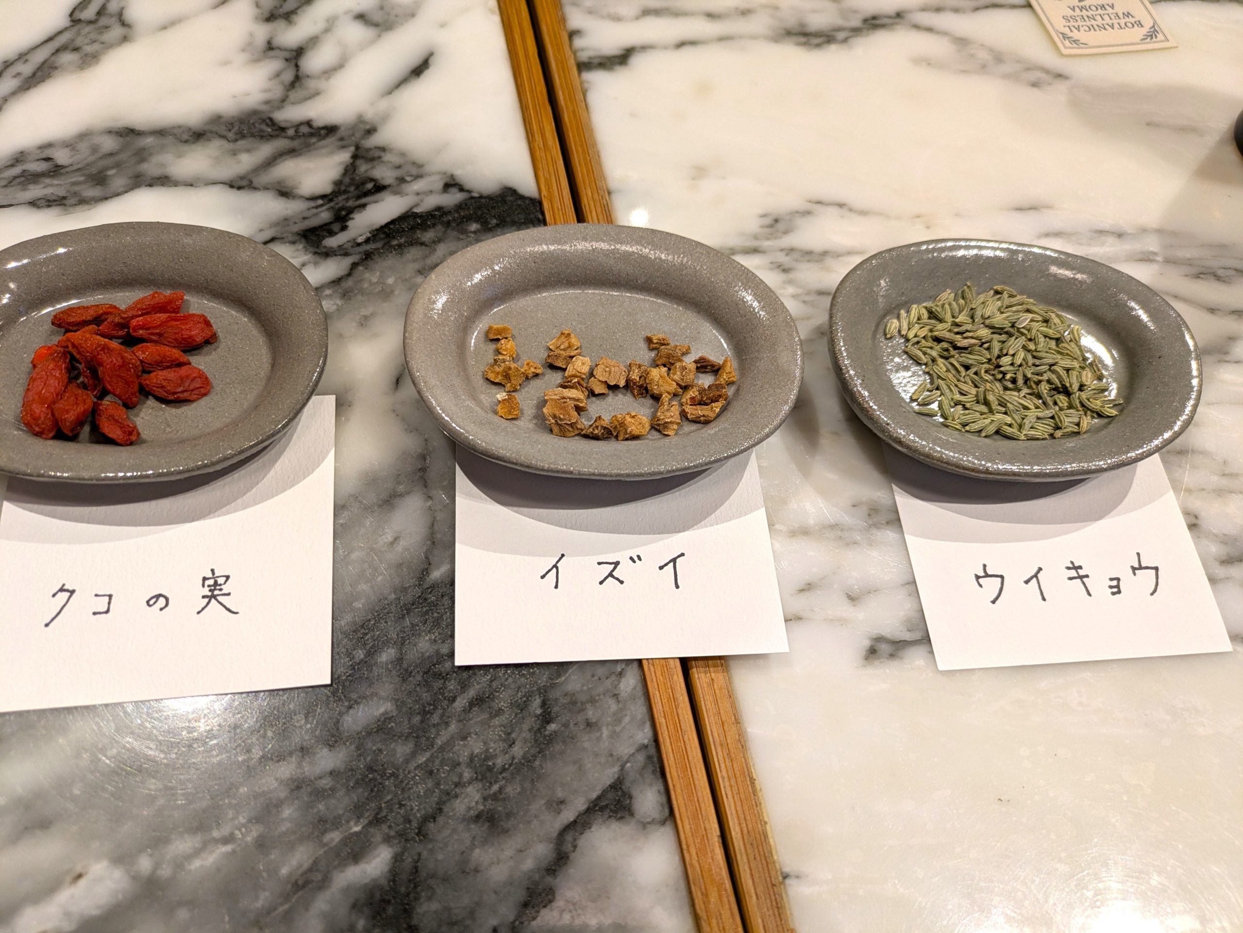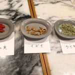 イズイ・ウイキョウ・クコの実で抽出したアロマのいい香りと、3種を使った薬種。「食養生」の講義も拝聴した、楽しいひと時でした。